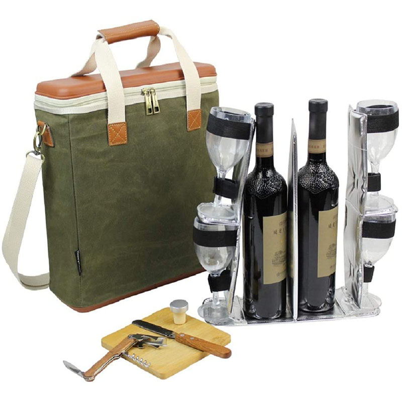 便携式酒袋冷藏袋是您旅行、聚会、野餐、户外海滩旅行和BYOB晚餐活动的终极酒瓶袋。这款加厚双瓶酒架设计用于运输两个瓶子可让您最喜欢的葡萄酒保持冰镇并受到保护。这是葡萄酒爱好者的必备配件是送给喜欢一杯优质葡萄酒的女士、男士和饮酒者的理想礼物。保温包定制